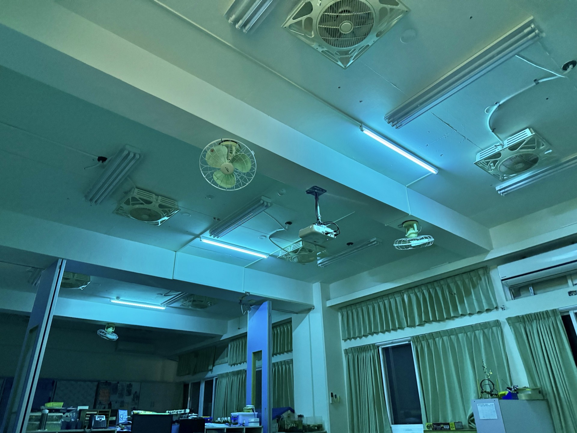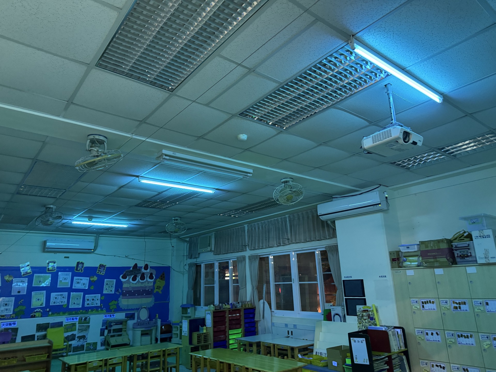 配合學校假日施工,一到三樓一起拉線牽電到辦公室統一控制